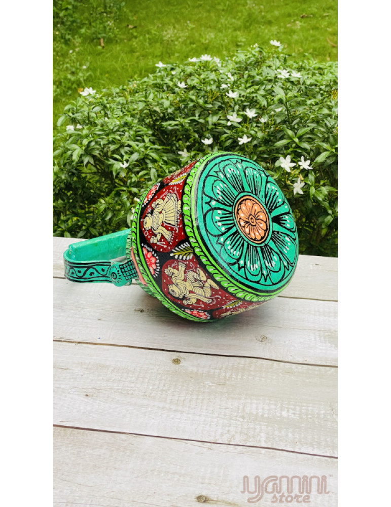 Painted Pattachitra Kettle with Patta Paste Design Godess Laxmi Hindu Mythology
