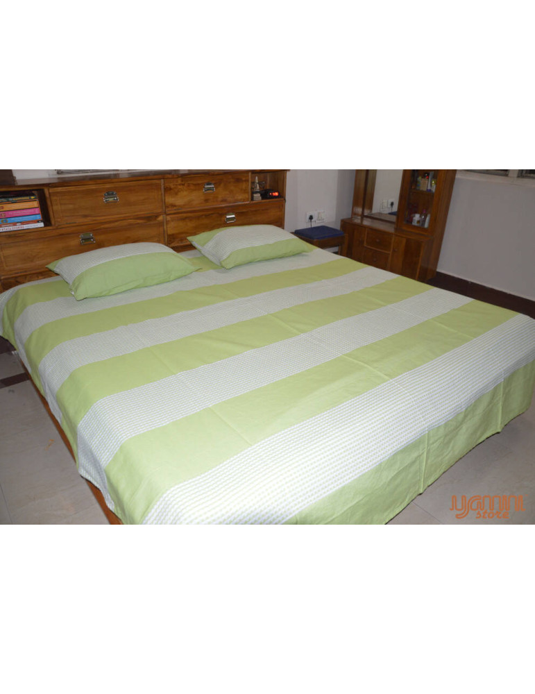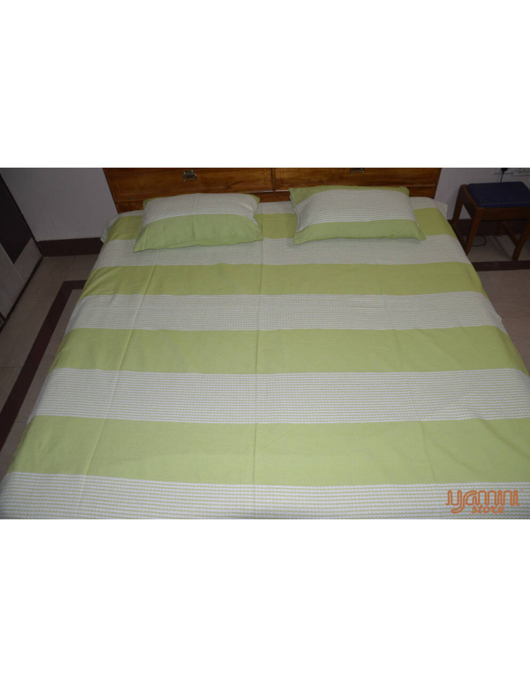 This product is a completely handwoven handloom bedsheet weaved by the artisans of Khekra Uttar Pradesh, India. They are skilled in this particular striped pattern weaving from ancestorial times. It is durable and retain coolness.
