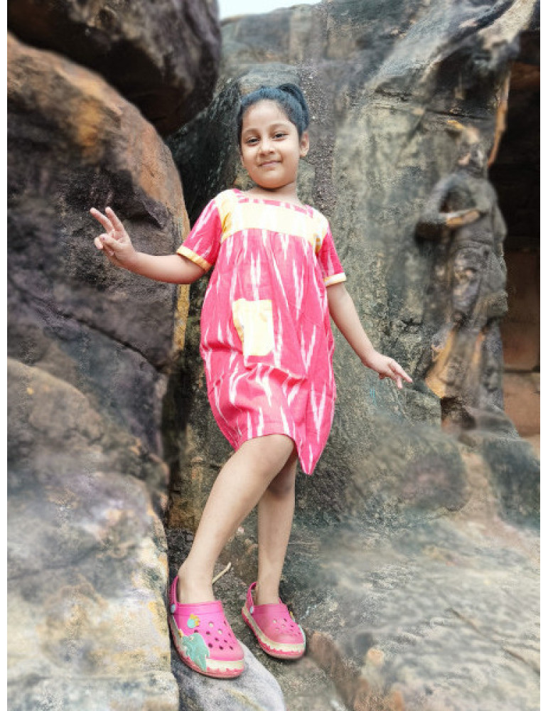 This is very comfortable to wear during the summer season. The fabric is Bhagalpuri Ikat cotton.