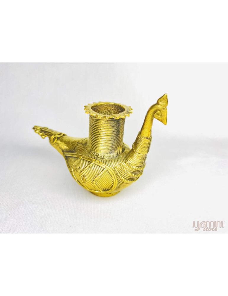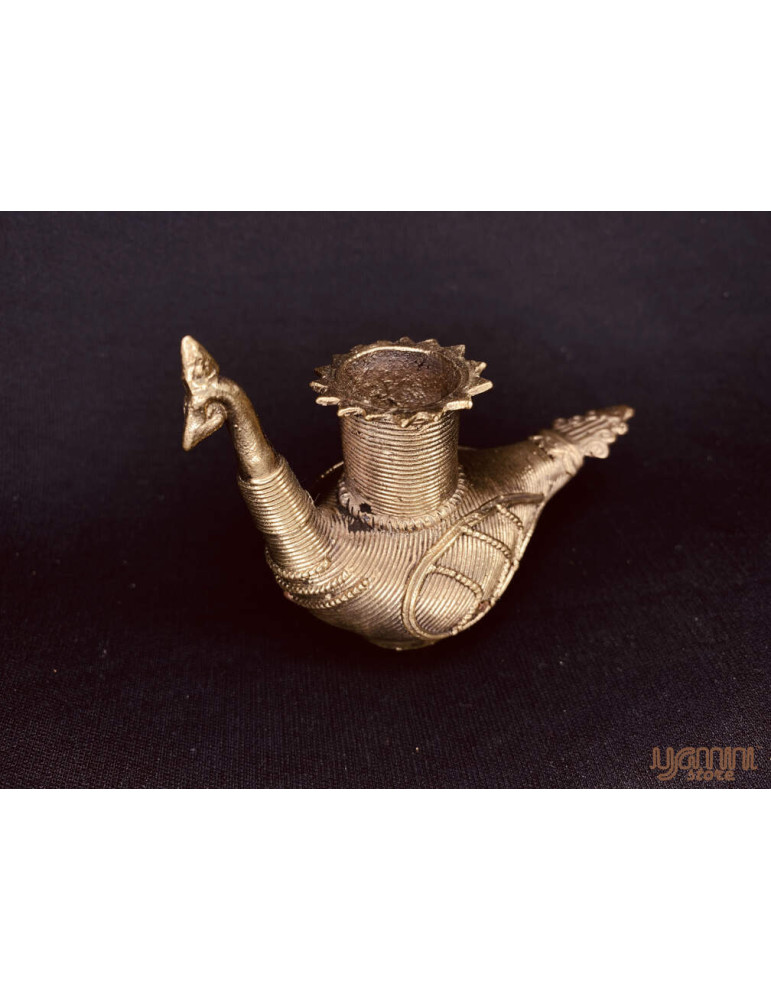 This figurine of the " PEACOCK" candle stand is a Dhokra Metal Casting made by the Damar Tribe of Odisha. It is a tribal art form and completely handcrafted.