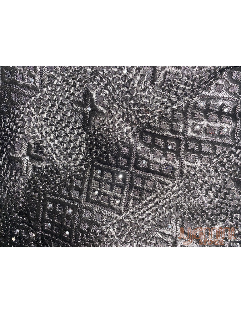 This heavy Black chinon dupatta is adorned with beautiful multicolored Phulkari Embroidery with golden border work exalting lavish elegance.