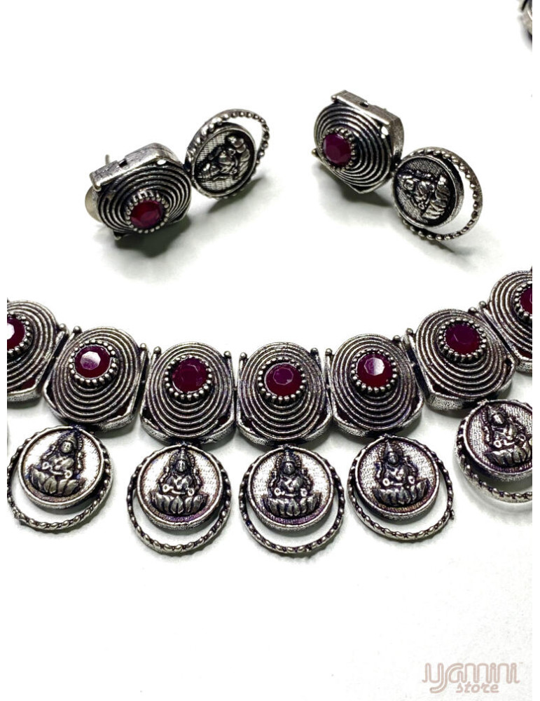 This is a Temple design contemporary spiral German Silver Pink necklace set. It gives an ethnic touch and elegant look. This is a piece of contemporary jewelry with a modern design. Temple designs with stones and motifs give an antique touch with excellent finishing.