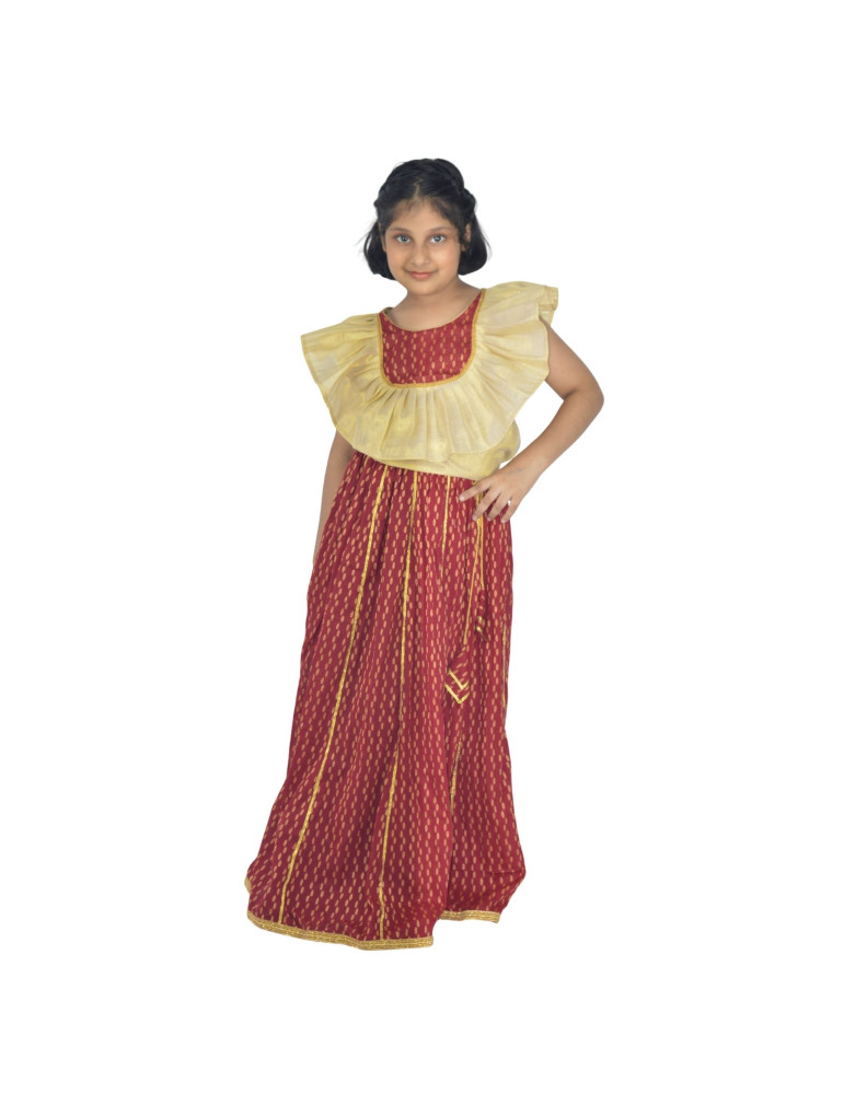 • Cotton Zari Maroon Tissue Kids Lehenga (Set Of 2)