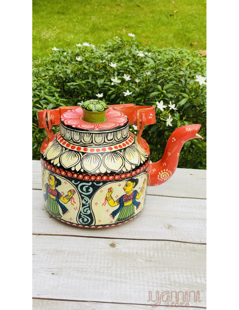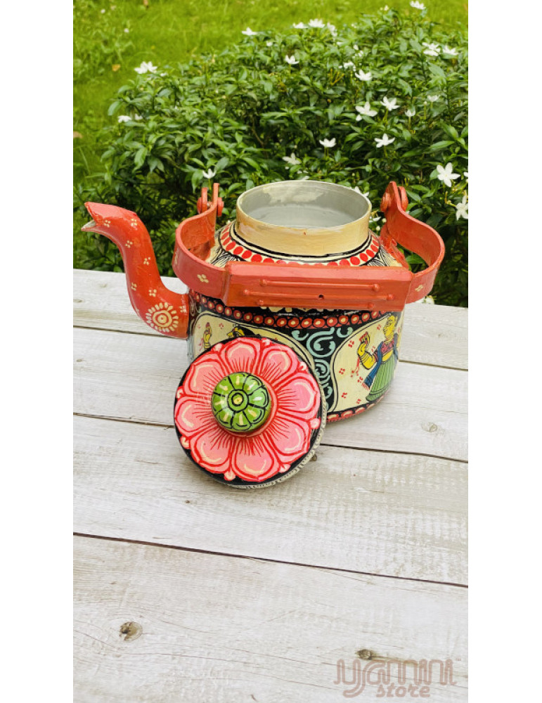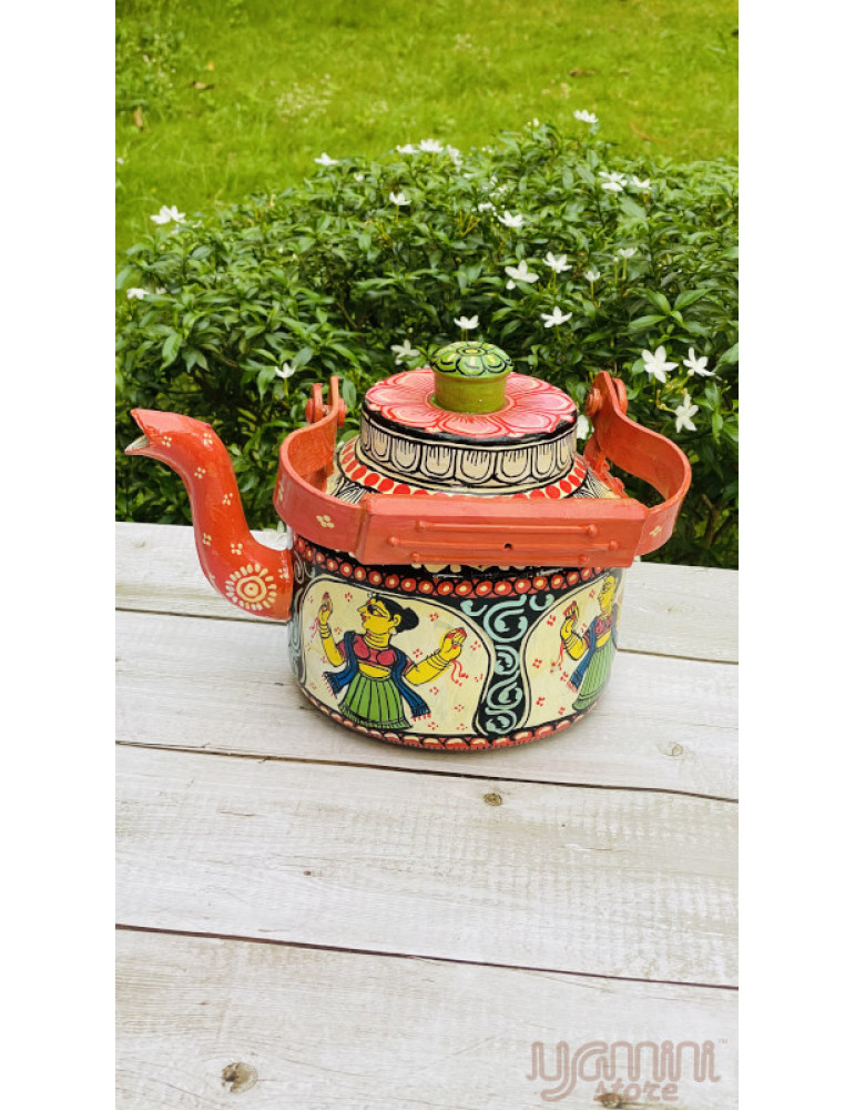 Painted Pattachitra Kettle Design : Parrots & Motifs