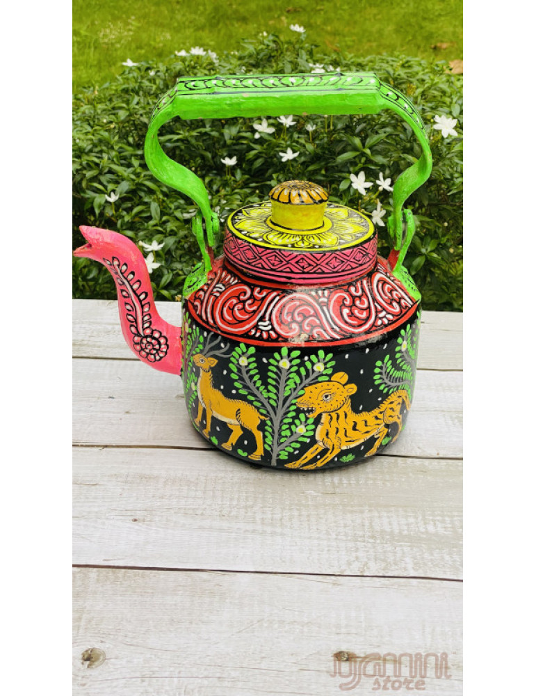 Painted Pattachitra Kettle with Patta Paste Design : Animal Motif