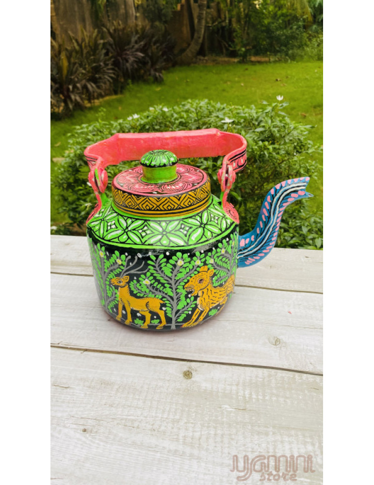 Painted Pattachitra Kettle with Patta Paste Design : Animal Motif