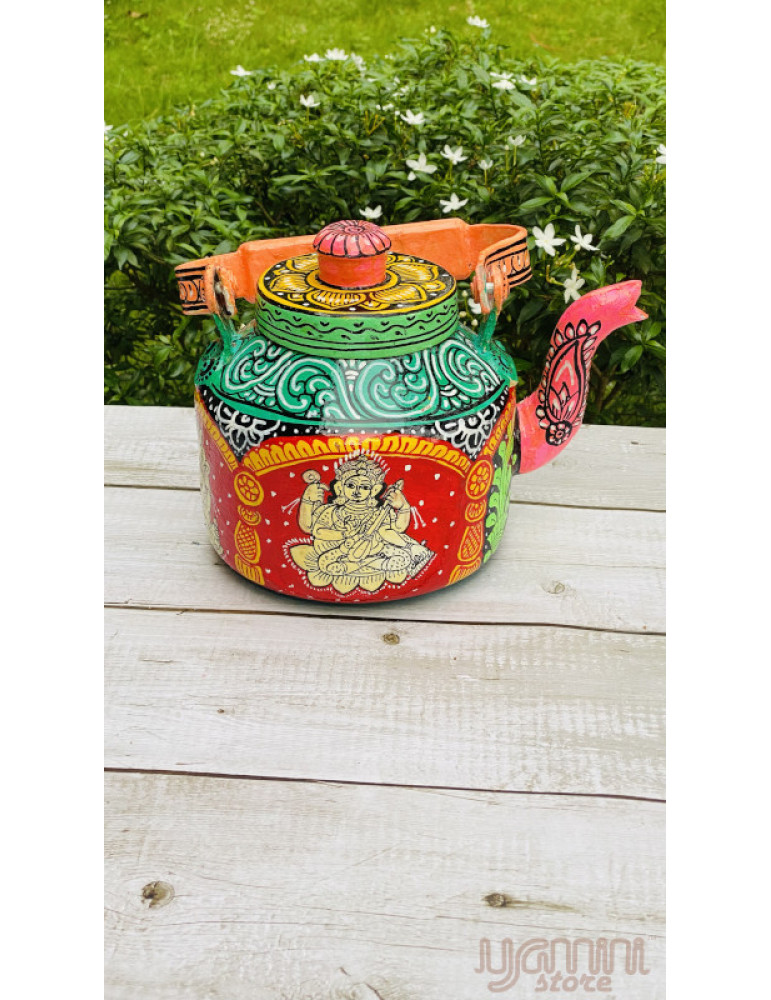 Painted Pattachitra Kettle with Patta Paste Design : Goddess Laxmi & Ganesh
