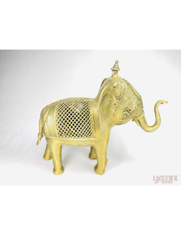 This figurine of "Elephant" is a Dhokra Metal Casting made by the Damar Tribe of Odisha. It is a tribal art form that is an amalgamation of their culture with induced antiquity. It is completely handcrafted.