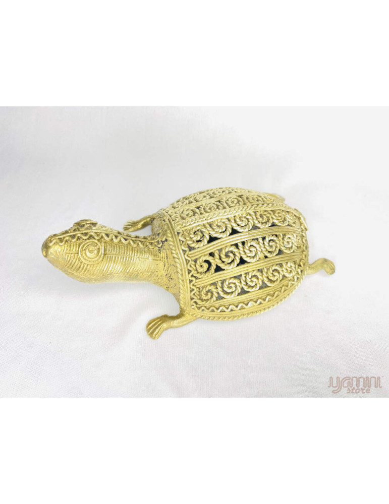 This figurine of "Turtle" is a Dhokra Metal Casting made by the Domar Tribe of Odisha. It is a tribal art form & completely handcrafted.