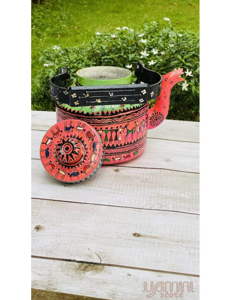 Painted Pattachitra Kettle Design : Parrots & Motifs