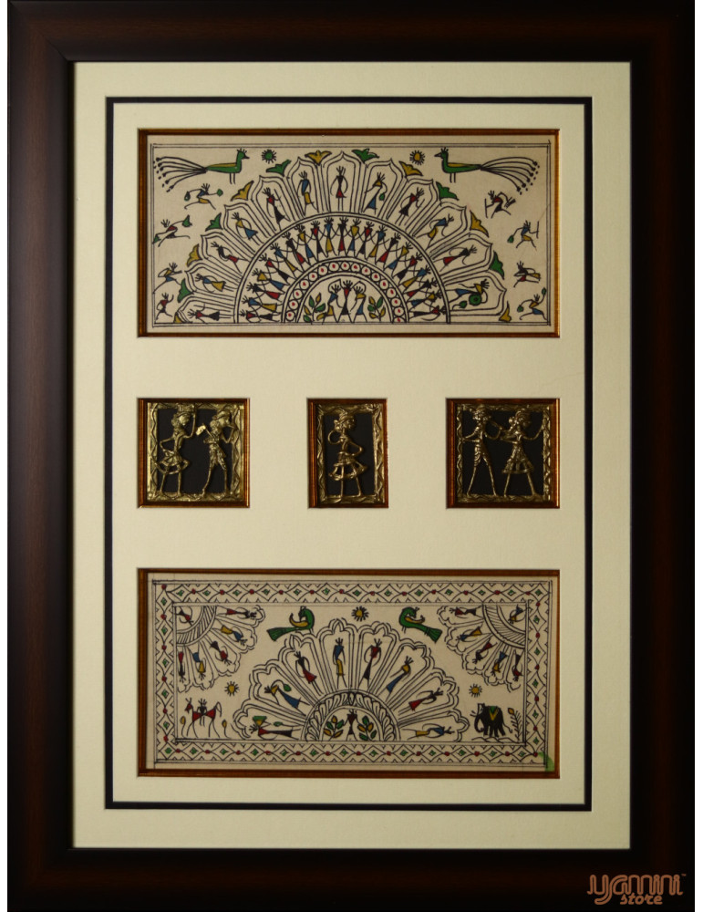 This Tribal Painting amalgamation of Tribal art & Dhokra craft. Figurines are made up of brass inside the glass frames. The process of preparing figurines is similar to Dhokra metal casting.