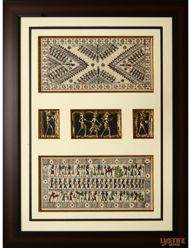 This Tribal Painting amalgamation of Tribal art & Dhokra craft. Figurines are made up of brass inside the glass frames. The process of preparing figurines is similar to Dhokra metal casting.