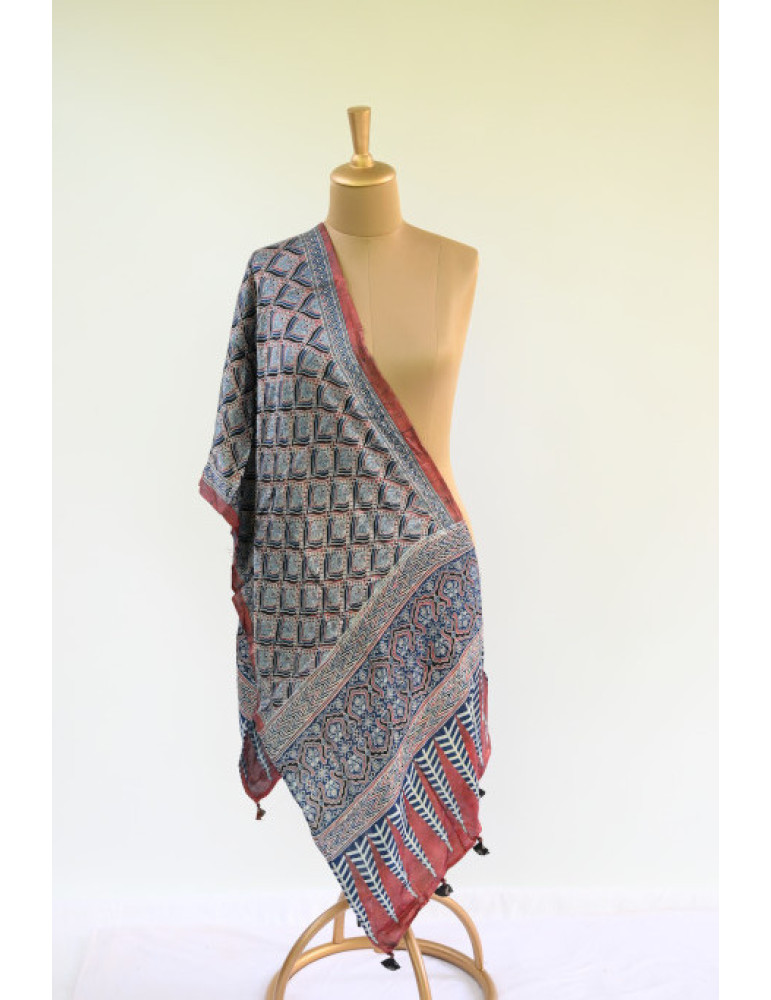 Exclusive hand dyed Ajrakh Hand Block handcrafted cotton dupatta. made in the shades of red and black ,very exceptional this Ajrakh  dupatta is perfect combo of sophistication and culture. Made by artisans from Rajasthan, India.