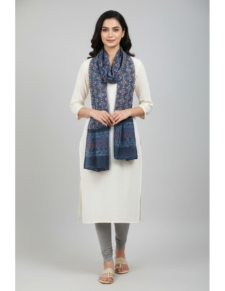 • Yamini Indigo Black Shade Ajrakh Handcrafted Cotton Dupatta