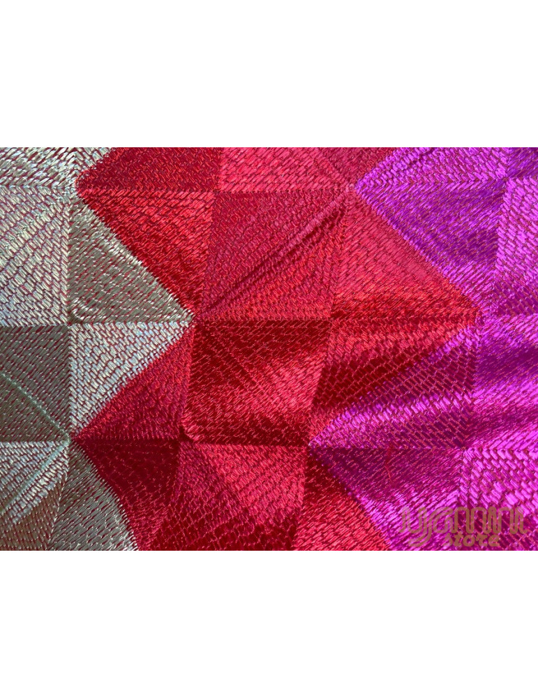 Authentic Hand Embroidered Phulkari Dupatta, Phulkari is a refined rural traditional handmade embroidery work of Punjab where Phool means flower and Kari means craft.