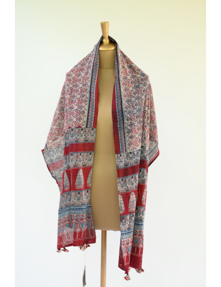 • Yamini Red Blue Black Shade Ajrakh Handcrafted Cotton Dupatta