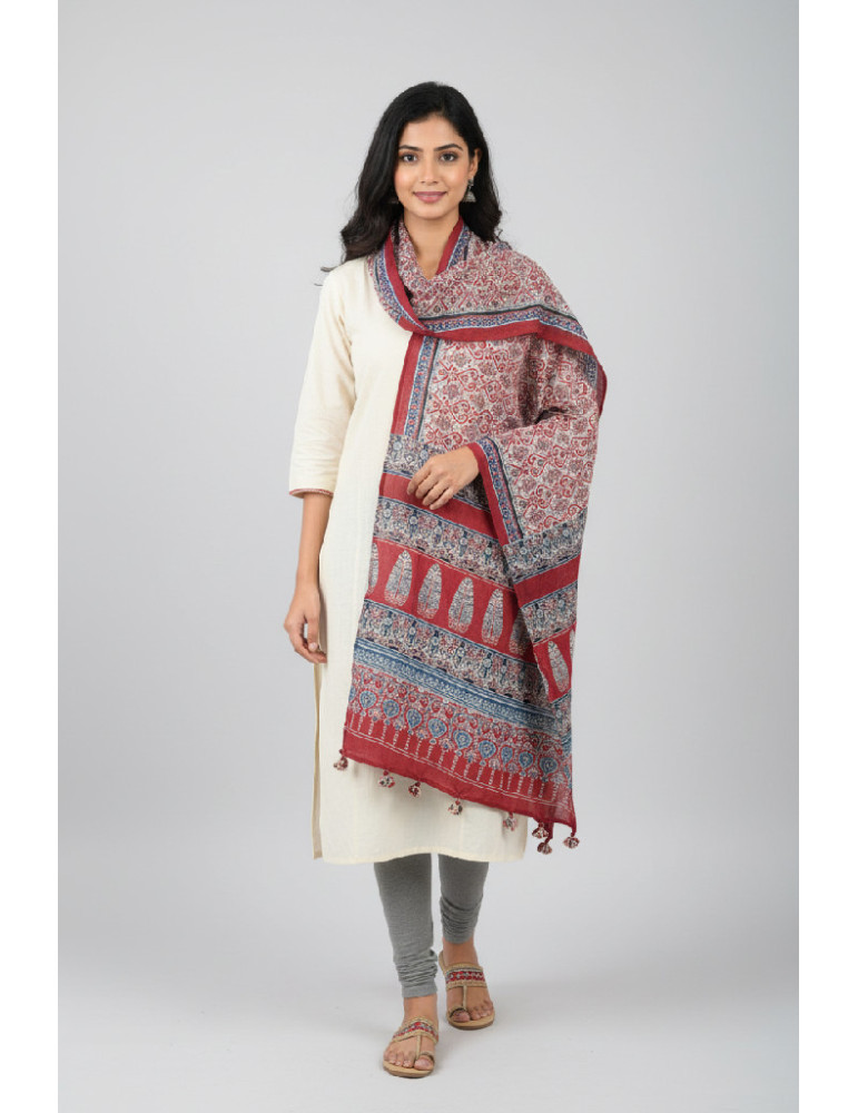 Yamini Red Blue Black Shade Ajrakh Handcrafted Cotton Dupatta