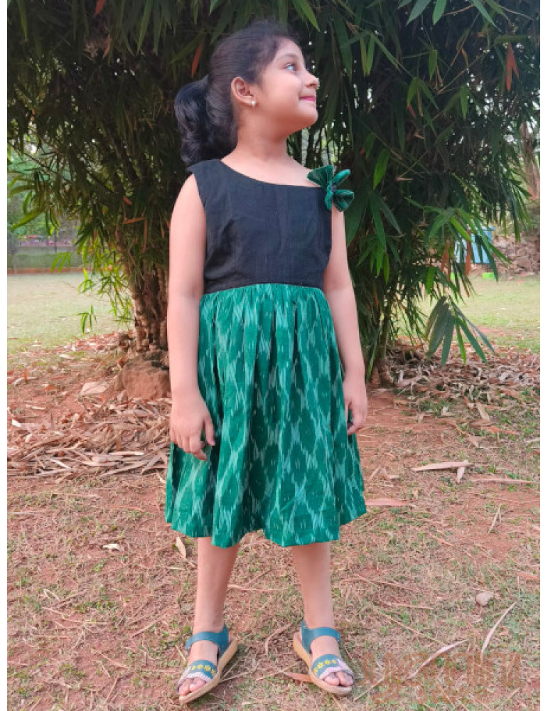 This is a handloom frock with modern touch which gives an elegant look. Your little one will be very comfortable in this elegant piece of fabric.