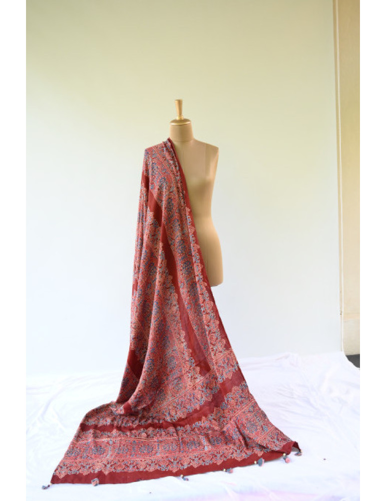 Exclusive hand dyed Ajrakh Hand Block handcrafted cotton dupatta. made in the shades of red and black ,very exceptional this Ajrakh dupatta is perfect combo of sophistication and culture. Made by artisans from Rajasthan, India.