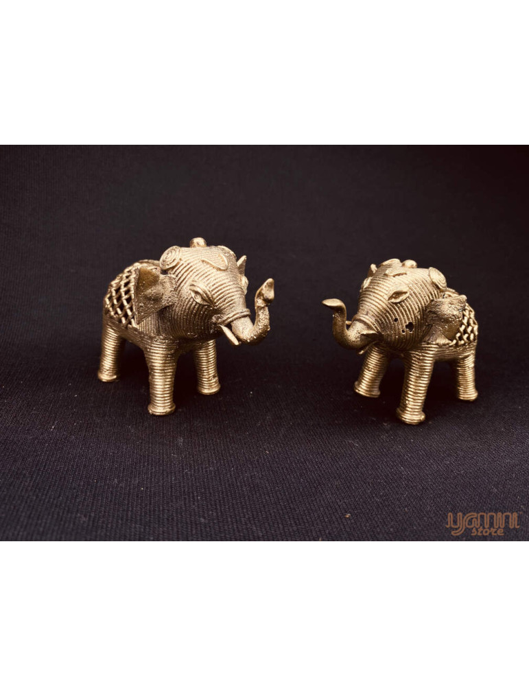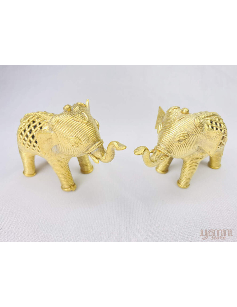 This figurine of small "Elephant" is an elegant Dhokra metal cast home decor made by the Damar Tribe of Odisha. It is a tribal art form and is completely handcrafted.This is a 4000-year-old non-ferrous metal casting started at the dawn of (Mohenjadaro and Harappa) civilization and tribal people are still maintaining their legacy.This is made by the lost wax technique and uses brass metal, clay, bee wax, cow dung, resin, and nut oil. to prepare this unique art.