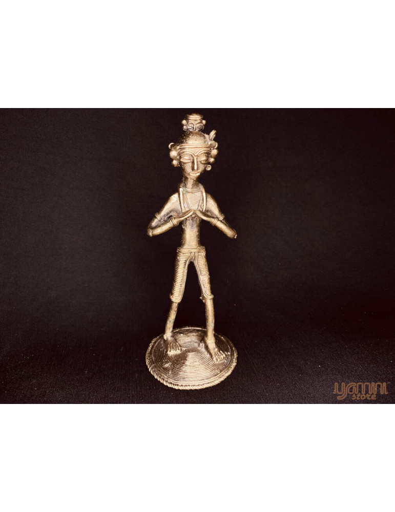 This is made by the lost wax technique and uses brass metal, clay, bee wax, cow dung, resin, and nut oil. to prepare this unique art.