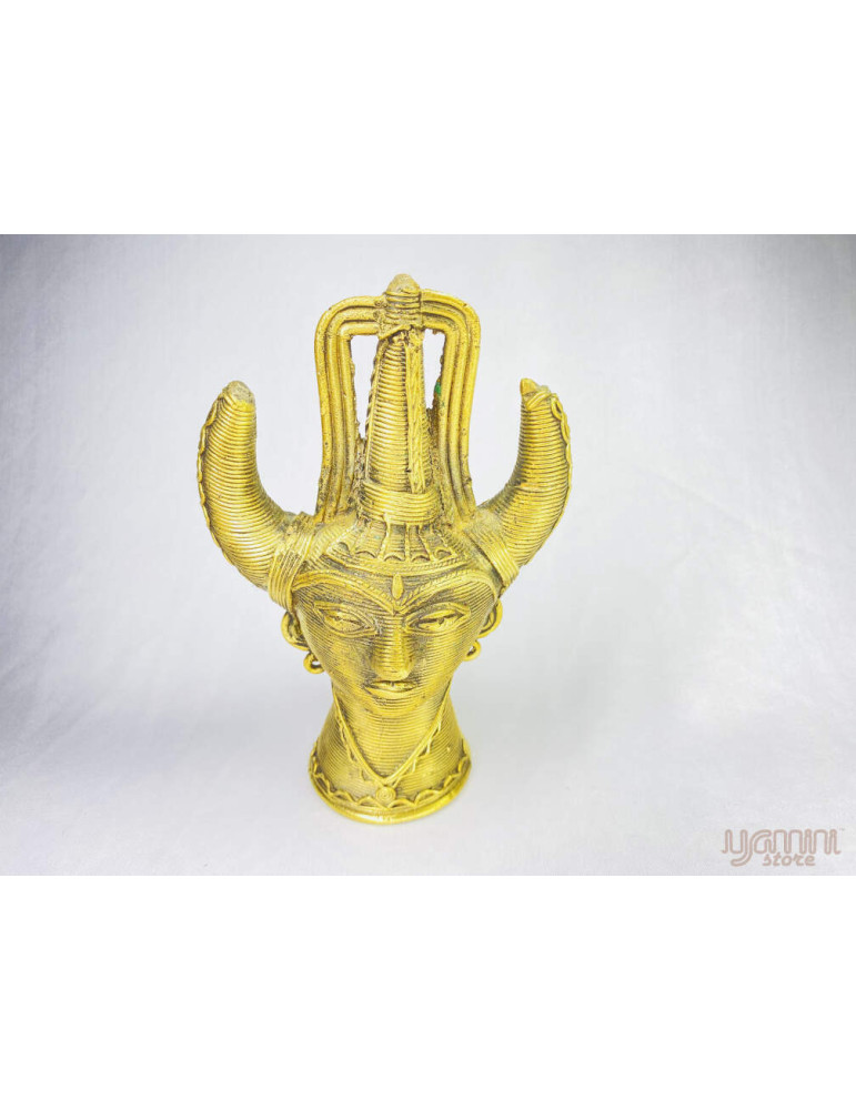 This is made by the lost wax technique and uses brass metal, clay, bee wax, cow dung, resin, and nut oil. to prepare this unique art.