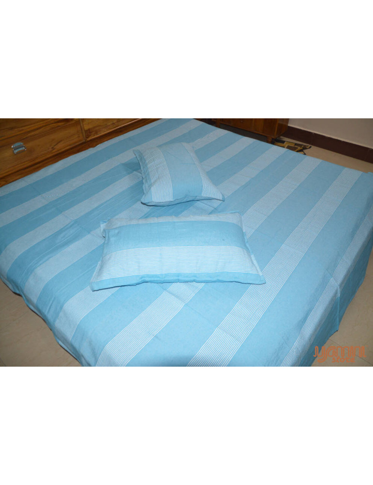 This product is a completely handwoven handloom bedsheet weaved by the artisans of Khekra Uttar Pradesh, India. They are skilled in this particular striped pattern weaving from ancestorial times. It is durable and retain coolness.