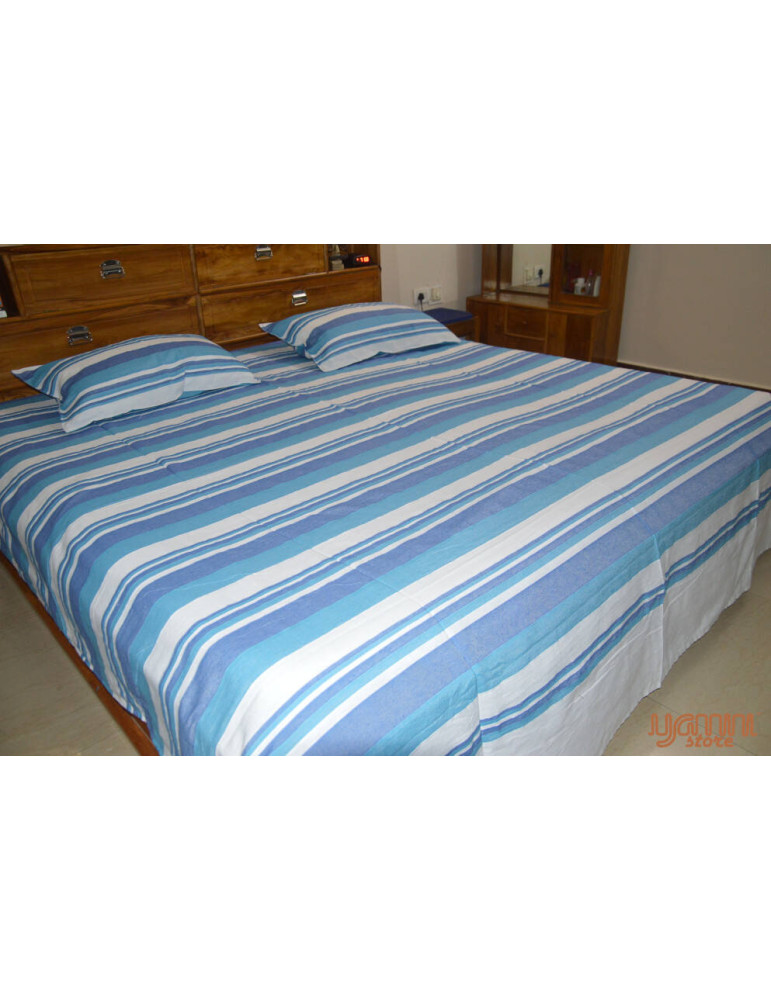 This product is a completely handwoven handloom bedsheet weaved by the artisans of Khekra Uttar Pradesh, India. They are skilled in this particular striped pattern weaving from ancestorial times. It is durable and retain coolness.