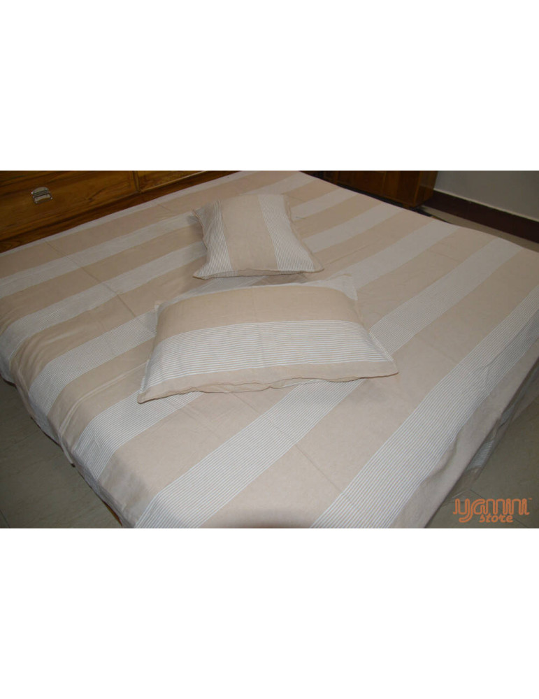 This product is a completely handwoven handloom bedsheet weaved by the artisans of Khekra Uttar Pradesh, India. They are skilled in this particular striped pattern weaving from ancestorial times. It is durable and retain coolness.