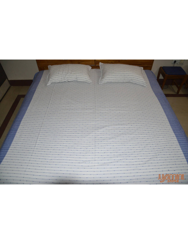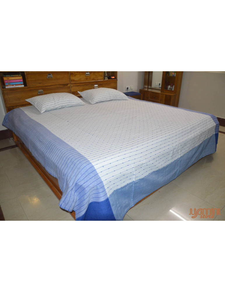 This product is a completely handwoven handloom bedsheet weaved by the artisans of Khekra Uttar Pradesh, India. They are skilled in this particular striped pattern weaving from ancestorial times. It is durable and retain coolness.