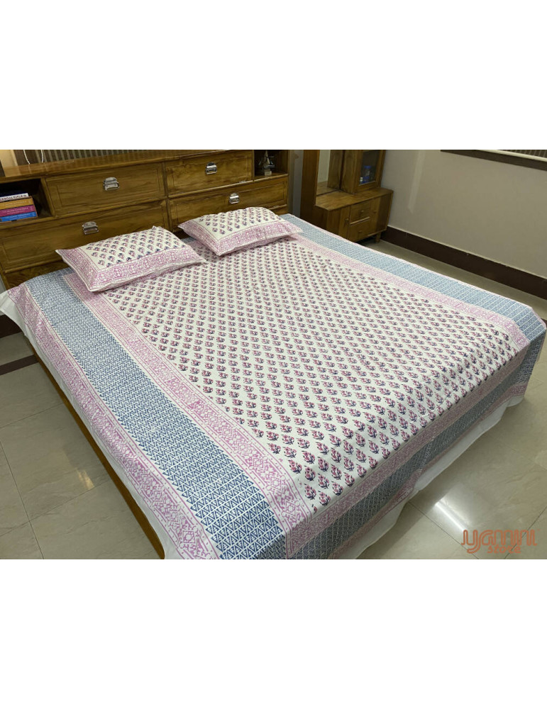 Crafted from soft cotton, this floral pattern hand block print bedsheet holds high standards to ensure fine quality and comfort.