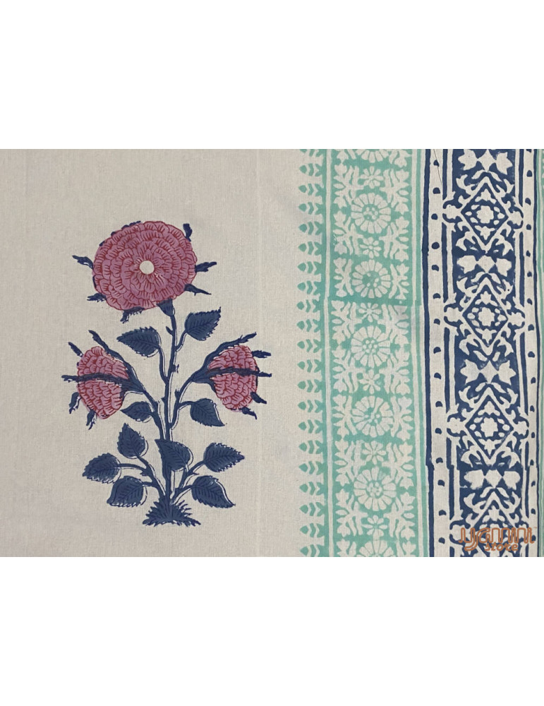 • Handloom Pure Cotton Floral Pattern Hand Block print Double Bedsheet with Pillow Cover