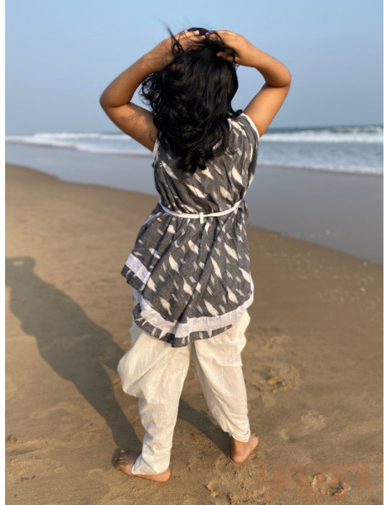 Angarakha Style (Ikkat) Top (Grey White) . Grey ikat body with white-grey border.