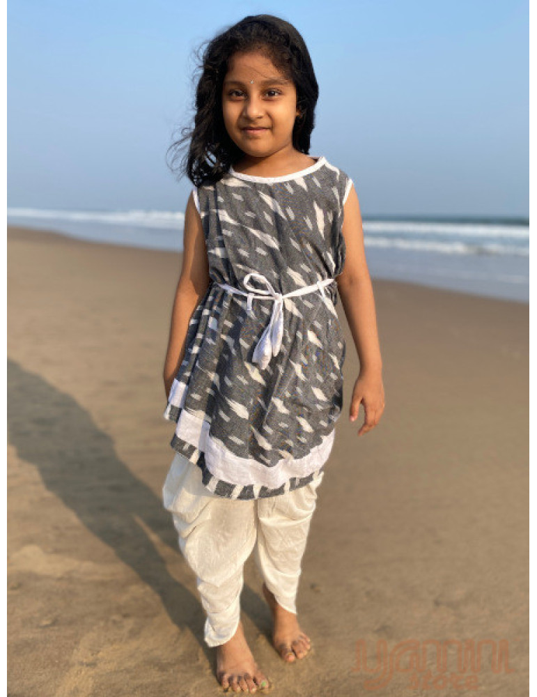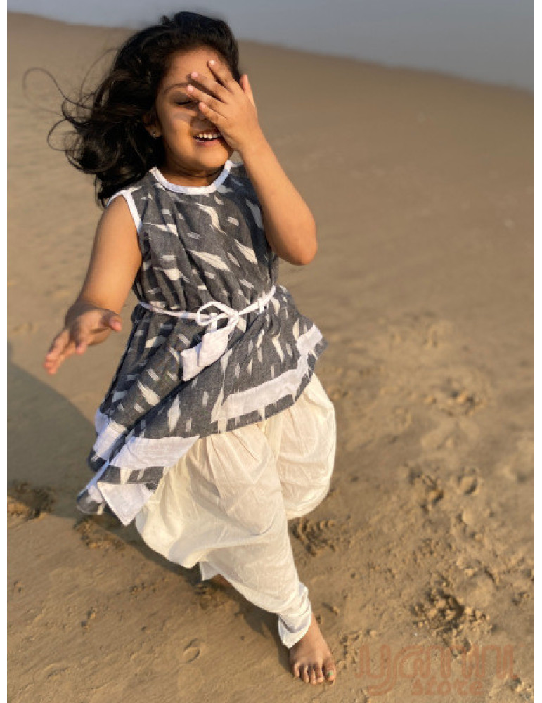 YAMINI Sleeveless Ikat Angrakha Style Top - Grey White